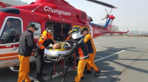 Ãæ³²¼Ò¹æÇï±â¸¦ ÀÌ¿ëÇØ ½Å°í Á¢¼ö ÈÄ 20ºÐ ¸¸¿¡ ÇöÀå¿¡ µµÂøÇÑ ¼Ò¹æÇ×°ø´ë´Â ±è ¾¾¿¡ ´ëÇÑ ÀÀ±ÞÁ¶Ä¡¸¦ Áö¼ÓÇÏ´Â ÇÑÆí, ½Å¼ÓÈ÷ Àαٺ´¿øÀ¸·Î À̼ÛÇß´Ù.