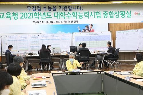 ¹ÚÁ¾ÈƱ³À°°¨Àº â¿ø¿©ÀÚ°íµîÇб³ µî ½ÃÇèÀåÇб³ 3°÷À» ¹æ¹®Çß´Ù. ¹Ú ±³À°°¨Àº ½ÃÇèÀåÇб³ÀÇ ¹ß¿ °Ë»ç¸¦ ºñ·ÔÇØ ÀԽǻóȲ Àü¹ÝÀ» È®ÀÎÇß´Ù. À̾î 9½ÃºÎÅÍ´Â µµ±³À°Ã»¿¡ ¼³Ä¡µÈ ¡¸°æ»ó³²µµ±³À°Ã» 2021Çг⵵ ´ëÇмöÇдɷ½ÃÇè Á¾ÇÕ»óȲ½Ç¡¹¿¡¼ µµ³» ¼ö´É½ÃÇà »óȲÀ» Á¡°ËÇϴ ȸÀǸ¦ ÁÖÀçÇß´Ù.