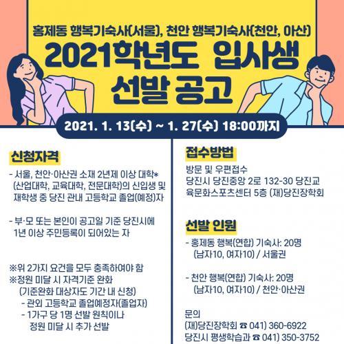 Áö¿øÇÏ´Â ±â¼÷»ç´Â ¼¿ï ¼´ë¹®±¸¿¡ À§Ä¡ÇÑ È«Á¦µ¿Çູ¿¬ÇÕ±â¼÷»ç¿Í, õ¾È µ¿³²±¸ÀÇ Ãµ¾ÈÇູ±â¼÷»ç µÎ °÷À̸ç, ¼±¹ßµÇ¾î ÀÔ»çÇÏ´Â ÇлýÀÇ º»ÀÎ ºÎ´ã±ÝÀº ¿ù 10¸¸¿ø ¼öÁØÀ¸·Î ŸÁö¿¡¼ °øºÎÇÏ´Â ´ëÇлýÀÇ °ÅÁÖºñ¿ë °æ°¨¿¡ Å« µµ¿òÀÌ µÉ Àü¸ÁÀÌ´Ù.
