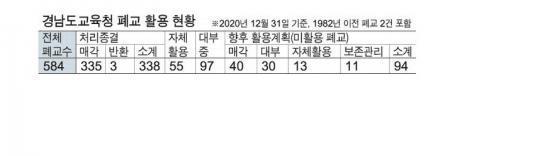 ÀÌ¿¡ µû¶ó µµ±³À°Ã»Àº ¹ÌȰ¿ë Æó±³ 94°³¸¦ ¾ÕÀ¸·Î ¸Å°¢ 40°³, ´ëºÎ 30°³, ÀÚü Ȱ¿ë 13°³, º¸Á¸ °ü¸® 11°³·Î °èȹÀ» ¼¼¿ü´Ù.
