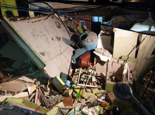 ÀÌ »ç°í·Î 44.3Á¦°ö¹ÌÅÍ ±Ô¸ðÀÇ ÁÖÅà 1ä°¡ ¿ÏÀüÈ÷ ºØ±«µÆÀ¸¸ç ÆÄÆíÀÌ ³¯¶ó°¡¸é¼ Àα٠ÁÖÅà 4äÀÇ º®°ú ´ë¹® µîµµ ÆÄ¼ÕµÆ´Ù.