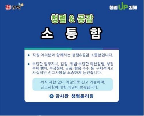 ¿À´Â 2¿ùºÎÅÍ ¿î¿µµÇ´Â ¡¸Ã»·Å&°ø°¨ ¼ÒÅëÇÔ¡¹Àº À͸íÀÇ °ø°£ÀÎ ½Ã û»ç º»°ü¡¤º°°ü¡¤±¸Áö°ü¡¤»ç¾÷¼Òµ¿ ÈÀå½Ç ³» °¢ 2°÷, ÃÑ 8°³¼Ò¿¡ ¼³Ä¡µÇ¸ç. ½Å°í´ë»óÀº °ø¹«¿øÀÌ Á÷¹«¼öÇà ½Ã °ÞÀº ºÎ´çÇÑ ¾÷¹«Áö½Ã, °©Áú, ºÎÁ¤ºÎÆÐ ÇàÀ§, ºÎÁ¤Ã»Å¹ µî ÀÔ´Ï´Ù.
