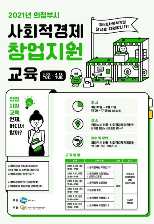 3¿ù 30ÀÏ ¡®»çȸÀû°æÁ¦¶õ ¹«¾ùÀΰ¡?¡¯¸¦ ½ÃÀÛÀ¸·Î »çȸÀû°æÁ¦ ±â¾÷°¡Á¤½Å°ú ¼Ò¼È¹Ì¼Ç, »çȸÀû±â¾÷¿¡ ¸Â´Â »ç¾÷°èȹ¼ ÀÛ¼º ¹× Àڱݰèȹ ¼ö¸³±îÁö ÃÑ 6ȸ¿¡ °ÉÃÄ ÁøÇàµÈ´Ù. À̹ø ±³À°¼ö·áÀÚµéÀº ÀÇÁ¤ºÎÇü »çȸÀû°æÁ¦ â¾÷Áö¿ø °ø¸ð»ç¾÷ ½Åû ½Ã °¡Á¡À» ºÎ¿©ÇÒ ¿¹Á¤ÀÌ´Ù.