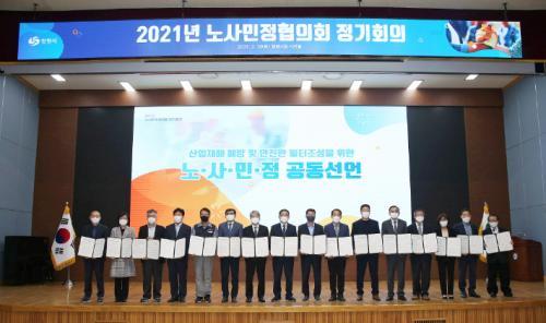 À̳¯ â¿ø½Ã ³ë»ç¹ÎÁ¤ÇùÀÇȸ ȸÀÇ¿¡¼´Â °øµ¿¼±¾ð¹® äÅðú ÇÔ²² Æ÷½ºÆ® Äڷγª ½Ã´ë¿¡ ´ëÀÀÇϱâ À§ÇÑ 2021³â ³ë»ç¹ÎÁ¤ Çù·Â Ȱ¼ºÈ »ç¾÷ °èȹ, ÃÖ±Ù À̽´°¡ µÇ°í ÀÖ´Â Ç÷§Æû³ëµ¿ÀÚ¿¡ ´ëÇÑ »çȸ¾ÈÀü¸Á ±¸Ãà ¹æ¾È¿¡ ´ëÇØ¼µµ ÁýÁß ³íÀÇÇß´Ù.