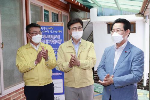 º¹Áö´ë¿øÀ¸·Î º¯½ÅÇÑ ±èö¿ì ±º¼ö¿Í ±è¿µ·Ï Áö»ç´Â º¸¼ºÀ¾ ÀÏ¿ø Ãë¾à°èÃþ ¾Æµ¿¼¼´ë¸¦ ¹æ¹®ÇØ °øºÎ¹æ ȯ°æ °³¼± Ȱµ¿¿¡ ÈûÀ» º¸Å°í, ¾î¸°À̳¯ ¼±¹°À» Àü´ÞÇß´Ù.