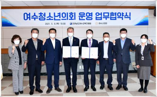 ¿©¼ö½ÃÀÇȸ´Â Àüâ°ï ÀÇÀå°ú ±èÇØ·æ ¿©¼ö±³À°ÀåÀÌ 6ÀÏ ¿ÀÈÄ ¿©¼ö±³À°Áö¿øÃ»¿¡¼ ÀÌ °°Àº ³»¿ëÀÇ ¿©¼öû¼Ò³âÀÇȸ ¿î¿µ ¾÷¹«Çù¾àÀ» ü°áÇß´Ù°í ¹àÇû´Ù.