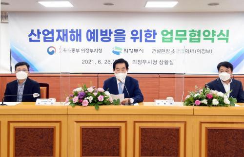 À̳¯ Çù¾à½Ä¿¡´Â ¾Èº´¿ë ÀÇÁ¤ºÎ½ÃÀå°ú °ø¼®¿ø °í¿ë³ëµ¿ºÎ ÀÇÁ¤ºÎÁöûÀå, À̾çÁø ÀÇÁ¤ºÎÁö¿ª °Ç¼³ÇöÀå ¼ÒÀåÇùÀÇü ´ëÇ¥ µîÀÌ Âü¼®ÇÏ¿© °ü³» °Ç¼³ÇöÀå ¾ÈÀü»ç°í ¿¹¹æÈ°µ¿À» À§ÇÑ À¯±âÀûÀÎ Çù·Âü°è¸¦ ±¸ÃàÇϱâ·Î ¾à¼ÓÇß´Ù.