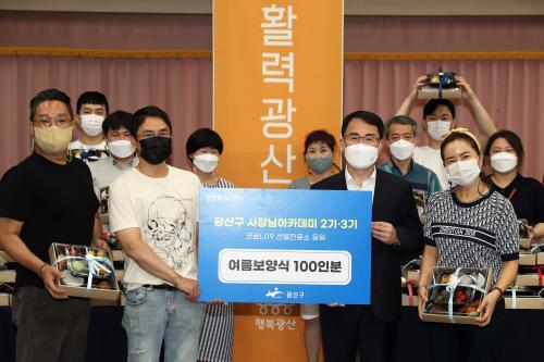 »çÀå´Ô ¾ÆÄ«µ¥¹Ì 2±â‧3±â ¼ö·á»ýµéÀº 28ÀÏ ¿ÀÀü ±¤»ê±¸Ã» 7Ãþ À±»ó¿øÈ¦¿¡¼ Àü´Þ½ÄÀ» °®°í ±¤»ê±¸ ¼±º°Áø·á¼Ò ÀÇ·áÁø¿¡ ¿©¸§ º¸¾ç½Ä µµ½Ã¶ô 100ÀκÐÀ» Àü´ÞÇß´Ù.