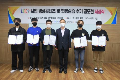 ¡®LINC+»ç¾÷ ¿µ»óÄÜÅÙÃ÷ °ø¸ðÀü¡¯ ½Ã»ó½ÄÀº LINC+»ç¾÷ ±³À°°úÁ¤ Âü¿© ¹× ¼º°ú¿¡ ´ëÇÑ °æÇèÀ» ÁÖÁ¦·Î Á¦ÀÛÇÑ ¿µ»óÀ» Æò°¡ÇØ 5¸íÀÇ ¼ö»óÀÚ¸¦ ¼±Á¤Çß´Ù.