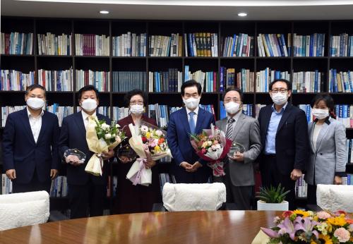 À̳¯ °£´ãȸ´Â Á¦34ȸ ¹®È»ó ¼ö»óÀÚÀÎ ¹®È¡¤¿¹¼ú ºÎ¹®ÀÇ ±èÀÎö Çѱ¹À½¾ÇÇùȸ ÀÇÁ¤ºÎÁöºÎ °í¹®, ºÀ»ç ¹× È¿Çà ºÎ¹®ÀÇ ¿øÀ±¼± °æ±âµµ¿©¼º´ÜüÇùÀÇȸ ÀÇÁ¤ºÎ½ÃÁöȸÀå, ±×¸®°í Áö¿ª¹ßÀü ºÎºÐÀÇ ¾çÁ¤±Ù »õ¸¶À»ÁöµµÀÚ È£¿ø2µ¿ ÇùÀÇȸÀåÀÌ Âü¼®Çß´Ù. üÀ° ÁøÈï ºÎºÐÀÇ ¿ÀÀç¼® ÀÎõ À¯³ªÀÌÆ¼µå Ã౸¼±¼ö´Â 2021³â K-¸®±× °æ±â ÀÏÁ¤À¸·Î ºÒÂüÇß´Ù.