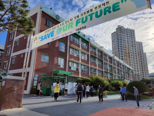 °¢ÈÁßÀº Ã¥¸°Áö ù° ³¯ ¡®SAVE OUR FUTURE¡¯¸¦ Ç¥¾î·Î ³»°É°í ±âÈÄ Çൿ ¼¸í ¹× ¼±¾ð½ÄÀ» Çß´Ù. °¢ÈÁß Çлýȸ´Â Àüü Çлý ÀǰßÀ» ¼ö·ÅÇØ Á¦·Î¿þÀ̽ºÆ®, ±âÈÄÇൿ 1.5¡É, ¿¡³ÊÁöÀý¾à, Áö±¸ÀÎÀÇ ½Ä½À°ü, ¿À·¡¾²±â, Ä·ÆäÀÎ µî 6°¡Áö ÁÖÁ¦·Î ´Ù¾çÇÑ ±âÈÄ È¯°æÀ» Áö۱â À§ÇØ ½ÇõÇϰí ÀÖ´Ù.