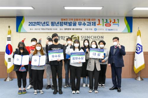 ½Ã»óÀÚ·Î ³ª¼± ¼øÃµ´ë °í¿µÁø ÃÑÀåÀº¡°À̹ø û³âÁ¤Ã¥¹ß±¼ Ȱµ¿À» ÅëÇØ ¾ò°Ô µÈ °ªÁø °æÇè°ú °æ·ÂÀÌ ¾ÕÀ¸·Î ÇϰíÀÚ ÇÏ´Â ÀÏÀÇ ¿øµ¿·ÂÀÌ µÇ°í, ´õ ³ª¾Æ°¡ ¿ì¸® ´ëÇаú Áö¿ª¿¡ ´õ ¸¹Àº °ü½ÉÀ» ±â¿ï¿© Áö¿ª»çȸ¿¡ ±â¿©ÇÏ´Â »ç¶÷À¸·Î ¼ºÀåÇÒ ¼ö ÀÖ´Â °è±â°¡ µÇ±æ ¹Ù¶õ´Ù.¡±¶ó°í ¸»ÇÏ¸ç ¼ö»óÀÚµéÀ» °Ý·ÁÇß´Ù.