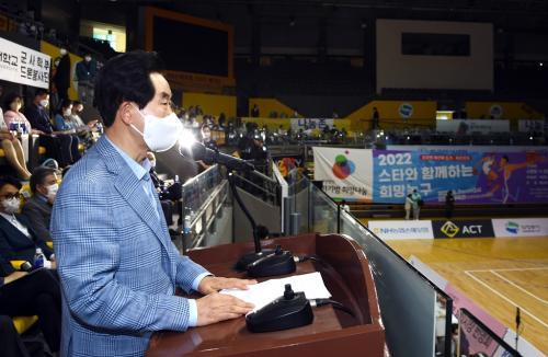 ¾Èº´¿ë ÀÇÁ¤ºÎ½ÃÀåÀº ¡°2022 ½ºÅ¸¿Í ÇÔ²²ÇÏ´Â Èñ¸Á³ó±¸ ÀÚ¼±°æ±â°¡ ¾î¸°À̵鿡°Ô ²Þ°ú Èñ¸ÁÀ» ÁÖ°í Äڷγª·Î ÁöÄ£ ¿©·¯ºÐµé¿¡°Ôµµ À§·Î¿Í ¿ë±â¸¦ ÁÖ´Â ÀÚ¸®°¡ µÆÀ¸¸é ÇÑ´Ù¡±°í ¹àÇû´Ù.