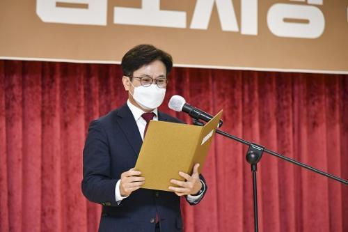 7¿ù 1ÀÏ ¿ÀÀü ÇöÃæÅ¾ Âü¹è¿¡ ÀÌ¾î ½Ãû Âü¿©½Ç¿¡¼ °³ÃÖÇÑ ÃëÀÓÇà»ç¿¡¼ ±èº´¼ö ½ÃÀåÀº ÃëÀÓ¼±¼¸¦ Çϰí ÇâÈÄ 4³â°£ ±èÆ÷½ÃÀÇ ºñÀü°ú ½ÃÁ¤Ã¶ÇÐÀ» ¹àÇû´Ù. ÃëÀÓÇà»ç Á÷ÈÄ ±èÆ÷½ÃÀç³¾ÈÀü´ëÃ¥º»ºÎ¿Í ºÀ¼ºÁ¦2¹è¼öÆßÇÁÀåÀ» ¹æ¹®ÇÏ¿© ¡°ÁýÁßÈ£¿ì µî¿¡ ´ëºñÇÏ¿© ¹è¼ö½Ã¼³ Áõ¼³¿¡ Â÷ÁúÀÌ ¹ß»ýÇÏÁö ¾Êµµ·Ï ÁÖÀǸ¦ ´çºÎÇÑ´Ù.¡±°í Çß´Ù.