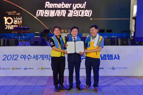 Á¤±â¸í ¿©¼ö½ÃÀåÀº ȯ¿µ»ç¸¦ ÅëÇØ ¡°¿©·¯ºÐ ¾Õ¿¡ ¼´Ï 2012³â À̰÷ ¹Ú¶÷ȸÀå¿¡ °¡µæÇß´ø ¿±â°¡ ´Ù½Ã ´À²¸Áö´Â °Í °°¾Æ °¡½¿ ¹¶Å¬ÇÏ´Ù¡±¸é¼ ¡°Àü ¼¼°è 104°³±¹ 820¸¸ ¸íÀÌ Âü°¡ÇÑ Áö±¸ÃÌ ´ëÃàÁ¦¸¦ ¼º°ø¸®¿¡ Ä¡·¯³½ °ÍÀº ÀÚ¿øºÀ»çÀÚ ¿©·¯ºÐ¿¡ °è¼Ì±â¿¡ °¡´ÉÇß´Ù¡±¸ç °¨»çÀÇ ¸»À» ÀüÇß´Ù.