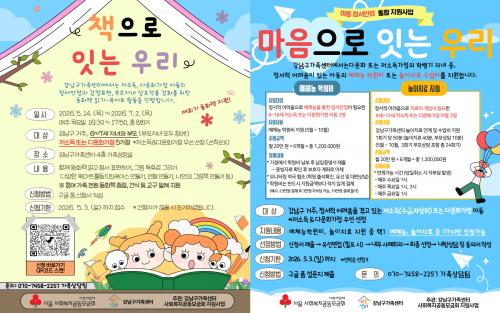 [¿¡ÄÚȯ°æÀϺ¸ °­³²±¸=À̽ŵ¿±âÀÚ] ²ÞÀÌ ¸ðÀÌ´Â µµ½Ã, ¹Ì·¡¸¦ ±×¸®´Â °­³²±¸°¡ Àú¼Òµæ¡¤´Ù¹®È­°¡Á¤ ¾Æµ¿ÀÇ °Ç°­ÇÑ Á¤¼­ ¼ºÀåÀ» µ½´Â ¡®Ã¥°ú ¸¶À½À¸·Î ÀÕ´Â ¿ì¸®¡¯ ÇÁ·Î±×·¥ Âü¿©ÀÚ¸¦ 5¿ù 3ÀϱîÁö ¸ðÁýÇÑ´Ù.