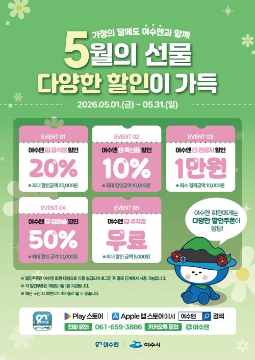 ¡®2026 °¡Á¤ÀÇ ´Þ ¸ÂÀÌ ¿©¼ö¿£ ÇÁ·Î¸ð¼Ç¡¯Àº 5¿ù 1ÀϺÎÅÍ 31ÀϱîÁö ÇÑ ´Þ°£ ÁøÇàµÇ¸ç, ¿©¼ö¿£ ȸ¿øÀ» ´ë»óÀ¸·Î ´Ù¾çÇÑ ÇÒÀÎ ÇýÅðú Âü¿©Çü À̺¥Æ®¸¦ Á¦°øÇÑ´Ù.